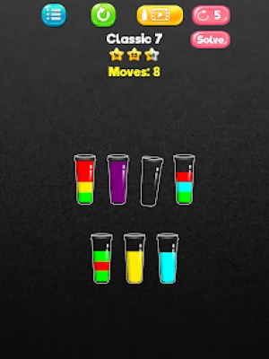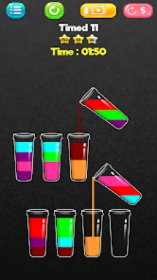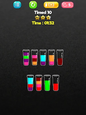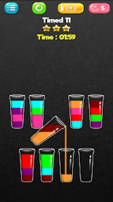 Try to sort it and pour colored fruit water in the bottles until all colors are in the same bottle. A relaxing and challenging game to train your brain