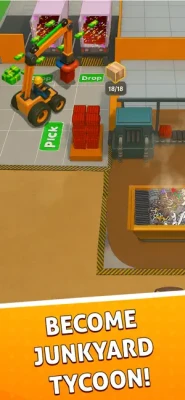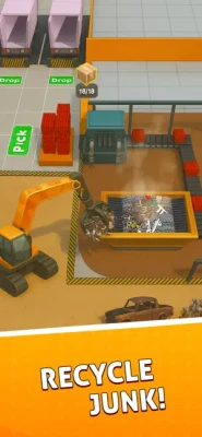 Now use the magnet head JCB excavator to lift scrapers and metal pieces in the scrapyard mechanic simulator. Drive your Magnetic excavator to the hydraulic press and drop all the scrappers. As a scrap mechanic now you will wait until the hydraulic press machine is done with packing in this hyper recycle trash games.