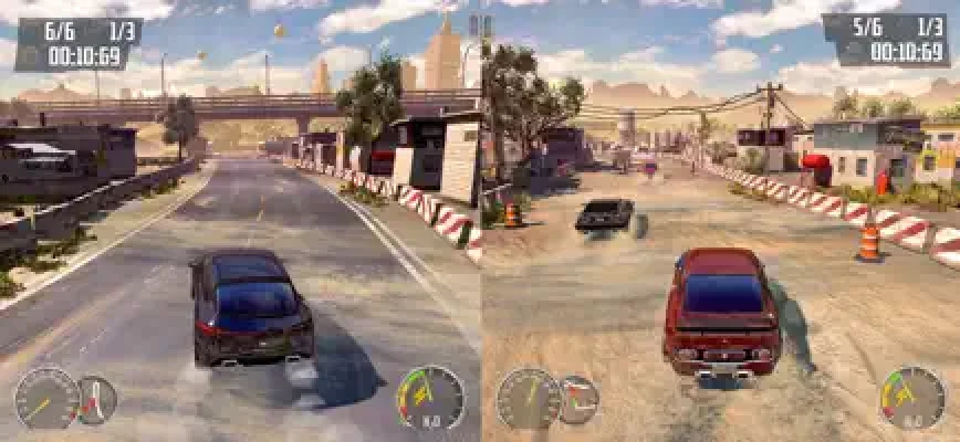 • Local split-screen – Connect external controllers or a keyboard to your device and challenge your friends for a round of split-screen multiplayer car chasing action.