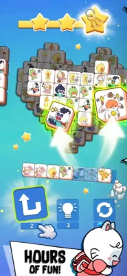 In the game, you need to blow your mind and match tiles. Just tap to place the Kawaii Friends tiles into the bar. When you have three of the same tiles in the bar then they will be collected. When all tiles are collected, you can pass to the next level.