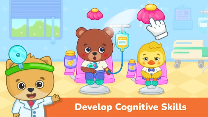 Interactive Medical Tasks: Includes 30+ mini-games where kids use tools like stethoscopes, thermometers, bandages, and dental equipment.