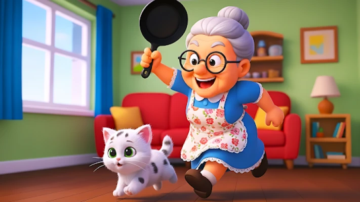In the ultimate prank game, Kitty Vs. Granny: House Chaos, a naughty cat takes on a determined granny. Put yourself in the shoes of a cheeky cat! What's your mission? Stay out of Granny's reach and cause chaos in the house by knocking things over, scratching furniture, and doing amusing pranks!