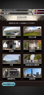 The locations specified by the game include sightseeing spots and public facilities in Awaji Island.