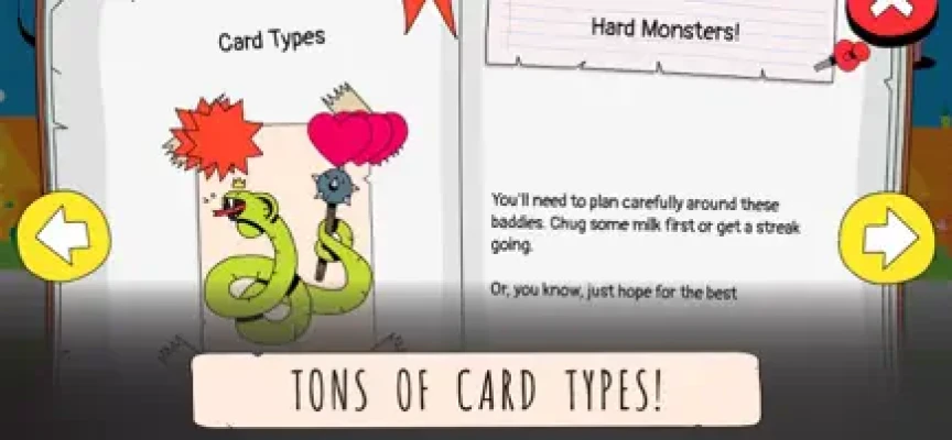 Descend through the multiple levels of each dungeon to slay tougher challengers. Rearrange the dungeon cards to face foes in the order you choose. Drink health drank to recover HP and power milk for an attack boost. Roll a D4, D6, or D8 based on your weapon to determine your damage. With several types of dungeons including endless dungeons, this dungeon crawler card game will challenge you and provide countless hours of fun.