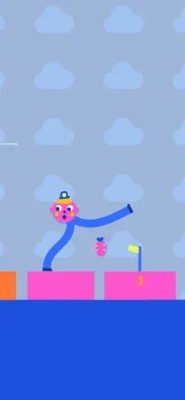 Pull back and release to launch your silly, floppy legs. Walk across short and wide gaps. Just be careful you don't fall in the water!