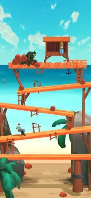 When climbing, Kong will tossing barrels at you, so you will have to quick jump over them to avoid a game over.