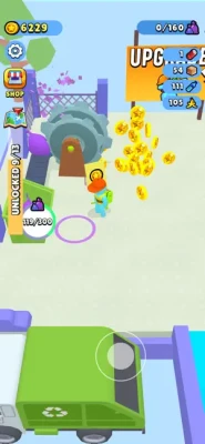 Unlock vehicles like scooters, skateboards or trucks to move faster, collect gold to improve your skills, tools and make your bag bigger!