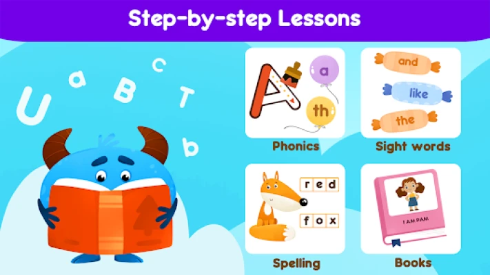 - Phonics Lessons help your child progress from recognizing letters to reading simple books. Features like phonics for kids and ABC games make every activity easy to follow.