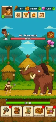 In this action-packed idle adventure, you control a prehistoric hunter who rises through the ages. Begin with nothing but a wooden stick… then upgrade your weapons, evolve your gear, and face enemies that grow larger, stronger, and more mythical at every stage. From rabbits and boars to mammoths, stone giants, and fire-breathing dragons — the hunt never ends!