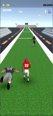 Rush for yards and glory! Swipe left and right to dodge linebackers or swipe down to perform a spin move when you can. Swipe up to jump over oncoming obstacles or to collect spin moves. Don't run into the water jug, unless you like being chased be a determined backer. You have the option to run in a single endless game called "Infinite." A career option is also available where you can climb the ranks from youth to high school, then college, pro, and maybe even the Hall of Fame!