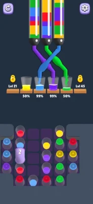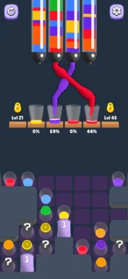 Look Ahead: Before making your first pour, examine the sequence of liquid segments in the tubes. Planning two or three moves ahead is essential for later levels.