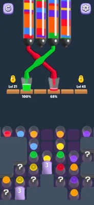 Progression: As you move through hundreds of levels, the number of colors and complexity of the tube segments increase.