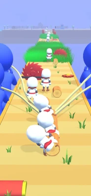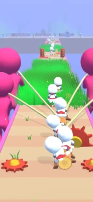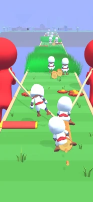 - Collect logs with characters on the track - Balance them all - Avoid hurdles - Cut your logs at the end and build huts