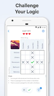 This fun yet challenging brain puzzle game with simple rules may help to strengthen logical thinking and deductive reasoning. Try to solve all the smart riddles grouped into thematic stories that are sure to delight in this one of the most exciting brain games. Help Detective Grapes investigate a necklace theft, participate in vacation planning for a young couple, or even go on a space expedition in these logic puzzles. You will find many mind-bending stories with varied plots and tricky solutions. If you are interested in solving logic problems, play this engaging brain game and have hours of fun!