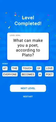 You need to figure out the answer for the question by following the clues and searching suitable words. When all the words are found the answer for the question appears. Sounds easy, right? Forget about boring word puzzles and start playing Guess Quote! Game features: Learn interesting facts Levels of different difficulty Challenging word search games Improve attentiveness Addicting gameplay So, what are you waiting for? Download Guess Quote: Word Game and enjoy!