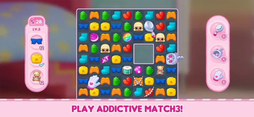 This game combines classic match-3 puzzle mechanics with an immersive room decoration experience. Players earn coins by completing levels, which can then be used to acquire **Surprise Balls**. These balls contain a variety of dolls, pets, furniture, and decorations, all designed to reflect a unique sense of style. The core loop focuses on solving puzzles to unlock new items and expand your doll collection.