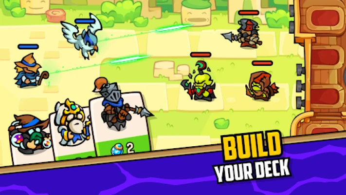 - Variety of cards: monsters, heroes, knights, archers, spells and magic creatures. Wide variety of units!