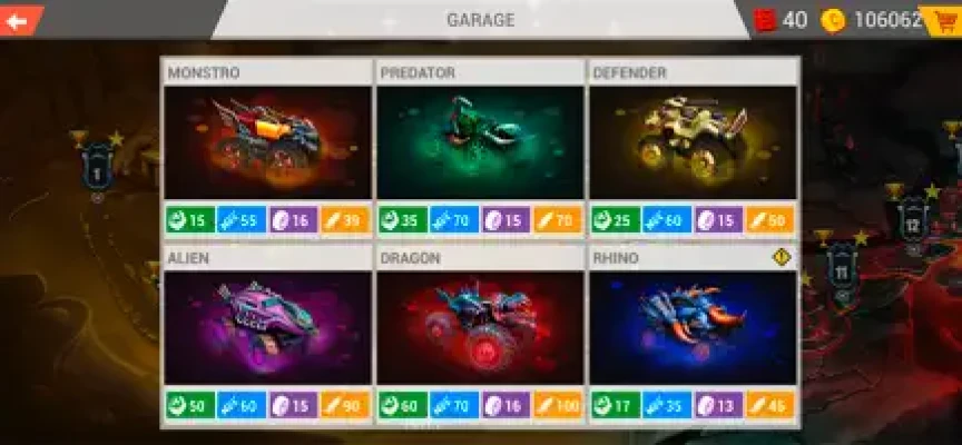 Collect coins to pimp your 2D monster truck with wicked decals, insane paint jobs and crazy hood ornaments to strike fear into the hearts of your opponents. This is a monster on wheels! Check the wide opportunities for customizing and fixing car! Create a bloodthirsty killing machine! Make your car unique and show other racing drivers what you're capable of!