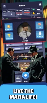 Who you trust and who you eliminate is up to you. Combat and Domination From one-on-one fights to large-scale mafia wars, countless battles await. The strength of your family, your soldiers, and your decisions will determine your victory. Win and gain respect — lose, and risk losing everything. Missions and Criminal Empire Crime is your daily routine: extortion, drug manufacturing, car theft, or bank heists. The bigger the risk, the bigger the reward. Use your earnings to buy properties, cars, and weapons — build wealth and reputation. Family Ties and Intrigue Mafia Life is more than just violence; it's an emotional and social experience filled with relationships, marriages, betrayals, and inheritance drama. Love, have children, or face betrayal. Every choice shapes your legacy. Diplomacy and Territory Wars Relationships with other mafia families shape the game world. Will you make peace or start a war? Each decision shifts the balance of power. Conquer enemy territories to expand your influence — but beware, attacks can come at any moment. Luck, Events, and Surprises Win or lose fortunes in underground casinos. Random events, surprise visitors, and sudden crises keep the game world alive and unpredictable. It's a constant dance between danger and opportunity. Achievements and Becoming a Legend Lots of achievements await. Win battles, complete missions, dominate the map, build a loyal family — or walk the path of a lone legend. Every decision is a chance to write your own mafia story.