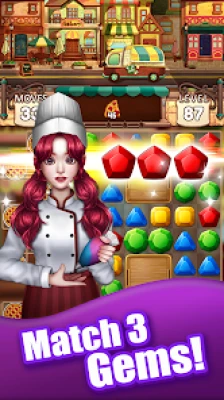 Have fun playing this free gem-matching game! All you have to do is to switch and MATCH 3 Gems to solve the PUZZLES and unlock new levels in a magical bakery shop.
