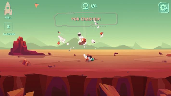 Mars dunes gameplay: You will tiny wings control your rocket and saving space team, also you will need to pay attention to the fuel that you use not to crash.
