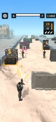 • Shoot & take cover! • Outsmart your enemies! • Collect & equip new weapons! • Collect money & buy upgrades!