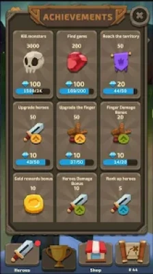 Click on the creature to damage it. Get coins for victories. Hire and upgrade heroes who will deal automatic damage to creatures. In each territory you will come across bosses, the time to fight with them is limited.
