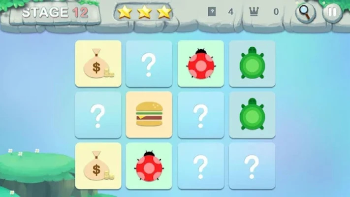 Touch a card to flip it and reveal its shape, find the matching shape to clear the cards!