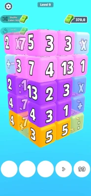 Tap again to deselect. Your selections will appear in the UI at the bottom of the screen. Once you have the right equation, blast the cube and earn diamonds! But don't worry if you get stuck, simply hit the shuffle button to mix things up. You can use diamonds to shuffle as many times as you need. As you progress through the levels, the challenges get harder and the rewards get bigger. Collect diamonds to use in the shop and buy power-ups to help you on your journey. Are you ready to blast some cubes and solve some equations?