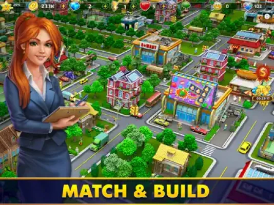 Play through dynamic match-3 levels, get energy and start to construct a city on an empty parcel of land. Expand your offerings step by step and transform your first development of several houses into a full-fledged city with dwellings, urban farms, industrial buildings, shopping malls, parks and more.