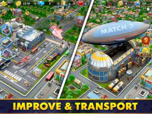 ***Did you know? The transporting of goods and even the money-making continues in your city while you play match-3 levels!***