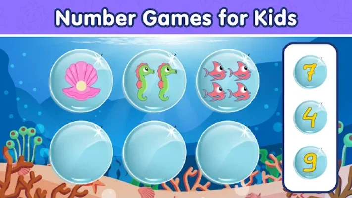 In Meemu Underwater games kids are encouraged to learn, identify and differentiate numbers, understand the relationship between numbers and quantities and build a foundation for very basic mathematical concepts like estimating quantities and learning to count. The games are simple to use and are designed in a way to provide instant entertainment for kids and make it a joy to play.