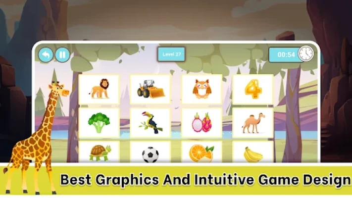 All rows & column of face off cards are given to player. Player needs to open the card by tapping one and remember the objects behind the card. If two subsequent card are matched then both card will be destroyed. To win the game, player needs to destroyed all cards in given time.