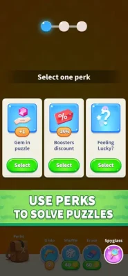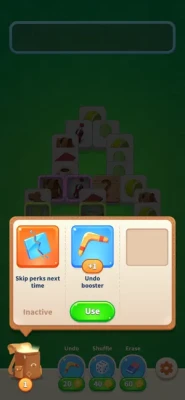 • The perks of doing business: Before each stage, choose from three free perks, which are either boosters to help you match tiles and complete the stage – including extra lives, boomerangs that undo your last move, and dice to shuffle all tiles – or extra gems and coins to add to your rewards at the end of the level. You can also choose the Feeling Lucky perk, which can give you regular rewards, special premium rewards, or even negative rewards – are you ready to make a risky investment?