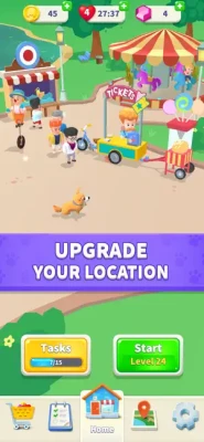 • Invest in success: Take your rewards from completing levels and spend them to build Mike’s little business empire. Each location in the game has 15 different items to unlock for gems, and each item has three colorful upgrades, one of which is available for gems, the second for coins, and the third for completing special challenge levels. Upgrade all items to at least one-star level to unlock the next delightful location, then follow Mike and Milo to the next chapter in their entrepreneurial adventure.
