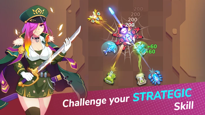 Be wise! You are a strategic general to collect, combine and build up your army in this auto battler game. In each hustle battle clash, you will face enemy forces with diverse traits, skills and strength. All you need to do is to deploy your tank shooters and airplane shooters in the best formation on the auto battler chessboard and let the auto battle begin. Choose strategies wisely to attack and defeat your enemies. Who will be adaptable to the aggressive tide and survive till the end?