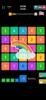 You have 5 block cards in the beginning, Drag the first block card in the Block Card Area to any block card in the Chessboard Area. when the block card meets the card on the chessboard, numbers on the chessboard card will change to the sum of numbers on both block cards.its so that simple and funny.
