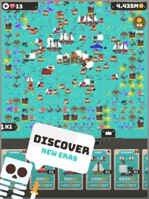 Move on to new worlds and eras. Conquer oceans and defeat pirates, destroy tanks, trenches, jeeps and aircrafts. Finally make huge money, develop your company’s head quarters and become a master of skyscrapers in the wild modern city.
