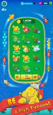 * Buy, Merge, and Manage your fishes to make them earn coins for you