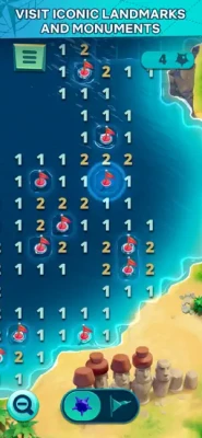 Which tiles on the board hide dangerous explosives? Use numeric clues and your powers of deduction to find out, clearing mines in harbors and ports. Complete puzzles to unlock landmarks around the globe. Collect stickers and posters in the retro style of a bygone era as you travel to each beautiful location.