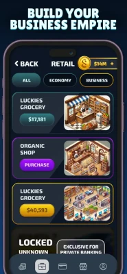 Start Small • Tap to earn your first dollars and boost per-click profit • Upgrade speed, price and capacity for faster growth • Unlock new venues: retail kiosks, burger stands, fitness gyms Build a Business Empire • 12+ sectors to master—IT, shipping, hotels, airlines, medicine, media • Open “Create Your Own” companies and watch revenues skyrocket • Each upgrade multiplies passive income and overall valuation Invest & Multiply • Trade on a live stock market mini-game—buy low, sell high • Speculate in the crypto market for high-risk rewards • Track cash flow and diversify with a personal portfolio dashboard Live the Billionaire Life • Collect supercars, yachts, private jets and luxury real estate • Acquire rare art, islands and jewelry to boost prestige score • Flaunt your lifestyle on the global leaderboard of tycoons Events & Progression • Daily rewards and “Passive Income Weekend” events • Limited-time industries—AI start-ups, green energy farms, space tourism • Reset progress to gain Angel Investors and ×profit multipliers • Detailed stats panel to measure every source of income Download FREE today—tap, invest, grow—and build the ultimate money game empire!