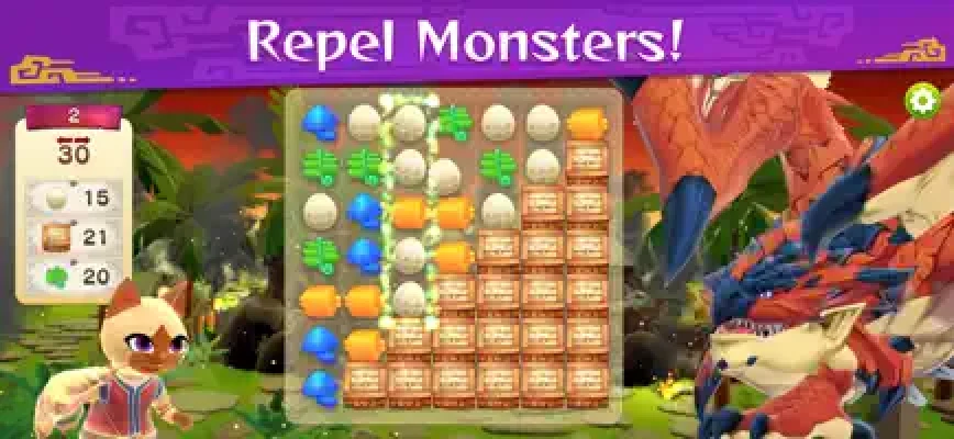 Capcom—the company behind Monster Hunter, Resident Evil, Street Fighter, and Mega Man—now presents a casual and cute match 3 puzzle game. The destination? The Felyne Isles!