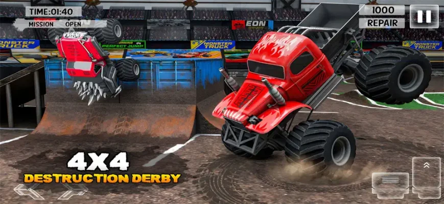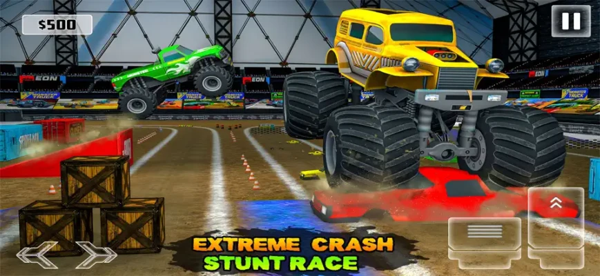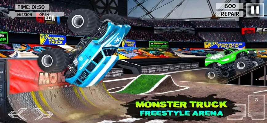 off-road enthusiasts converge for the ultimate display of power and skill desert rally racing. Monster trucks and jeep with horsepower, roar to life with their massive tires gripping the sand with determination. With engines growling and suspension systems primed, they await the signal to unleash their fury upon the desert landscape. • Feel the zeal of freestyle drifting arena with our newly designed Monster cars and trucks. In this unique arena, massive monster trucks perform jaw-dropping stunts and navigating challenging obstacles with finesse. Drivers showcase their control as they execute donuts, burnouts, and high-speed drifts, thrilling audiences with every spin and jump. • The Ground Theme Mode in a Monster Truck Arena brings the action close to the earth, creating an intense, rugged experience for both drivers and fans. This setup features a raw, dirt-packed surface layered with obstacles like mounds, trenches, and crushed vehicles, amplifying the authentic off-road feel. immerses spectators in an up-close, high-energy environment that celebrates the untamed power of monster trucks. Fasten your seatbelts and get ready for crazy stunts adventures.