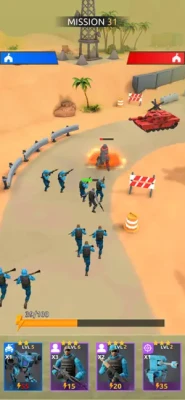 Earn money in battles and upgrade them to make more effective.