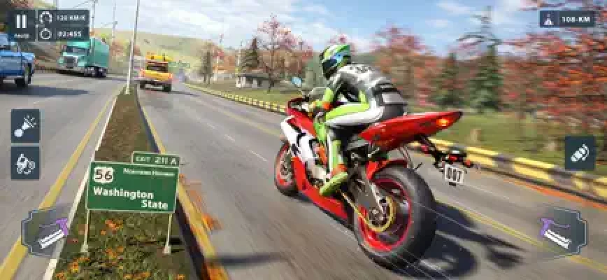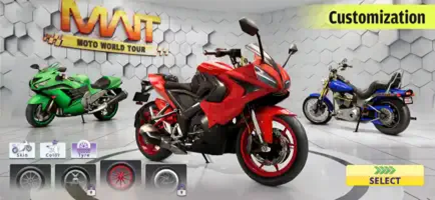 Get ready for an awesome experience where you can pick routes between your favorite cities in any country—be it the USA, UK, India, or elsewhere. Just choose a route, rev up your bike, and go on an epic ride with ‘Moto World Tour’!"