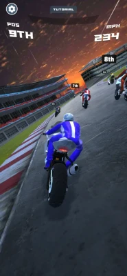 Every race challenges you to fight for the top four positions, ensuring you qualify for the next thrilling race. As you tap your screen twice, watch as your bike lifts off the ground and kicks in the nitro boost, leaving your competitors in the dust. Swipe to steer and take over your rivals, but remember, releasing your finger applies the brakes. MotoGP: Motocross Race is designed with a unique touch that allows for gameplay on vertical screens, gives a seamless and enjoyable racing experience. Top-notch visuals bring the game to life, accompanied by stunning audio that captures the essence of a real MotoGP race. You'll feel every gear shift and every turn as if you're right there on the track. Collect nitro boosts to increase your speed, but keep an eye on your surroundings! Our dynamic environments feature various sky aesthetics, contributing to the distinct ambience of each race. Plus, weather conditions add an extra layer of strategy to your races as you speed through rain or shine. At the end of each race, find out your final standing and plan for the next race. With MotoGP: Motocross Race, you're not just participating in a race; you're striving for motocross mastery. Get ready to grip the handles and rev the engine. MotoGP: Motocross Race is not just about speed; it's about skill, strategy, and, most importantly, the joy of racing. Download now and immerse yourself in the MotoGP universe!