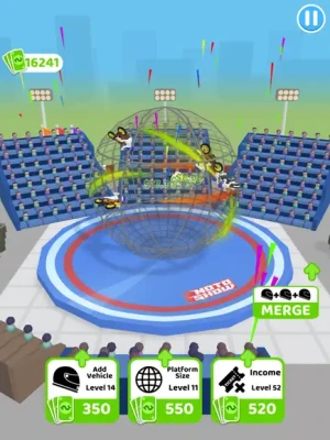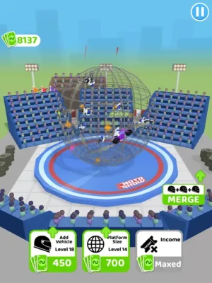 It's time to put on a huge motor show! Tap, earn and grow! Make your Cage bigger, merge your Motorcycles and grow the audience!