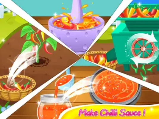 Come and help by making some yummy Chilli Souce, Chips, Bread, Pop Corn and delicious sweet Jam!! To prepare chilli sauce you can pick chillies from farm and clean them, cut them and crush them into hot chilli sauce! Also there are other foods available to make like make yummy Jam by picking strawberries, blueberries and peach by washing and crushing them you can get the best delicious fruit jam!