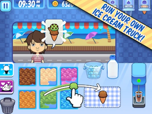 My Ice Cream Truck is a casual game that simulates an ice cream shop where you are the attendant and owner. Gameplay is a fun and simple tap-and-swipe interface; you need to slide the ice cream cone onto the table and choose the ice cream ingredients according to the customer's request. The difficulty and the levels are due to the dynamics of time management, and this means that orders for ice cream are getting more and more difficult in a short period of time. There is a parallel game-loop in which as customers give you game coins.