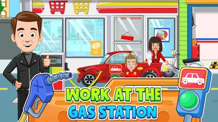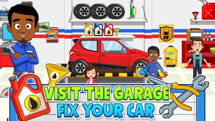Your child can start by choosing any of the fifteen characters included in this car themed game and purchase their first car at the My Town car dealership. They can visit the gas station to fill up and than take it for a (test) drive. Afterwards they can ensure it is sparkling clean by washing it at the car wash so it is ready for the next adventure.